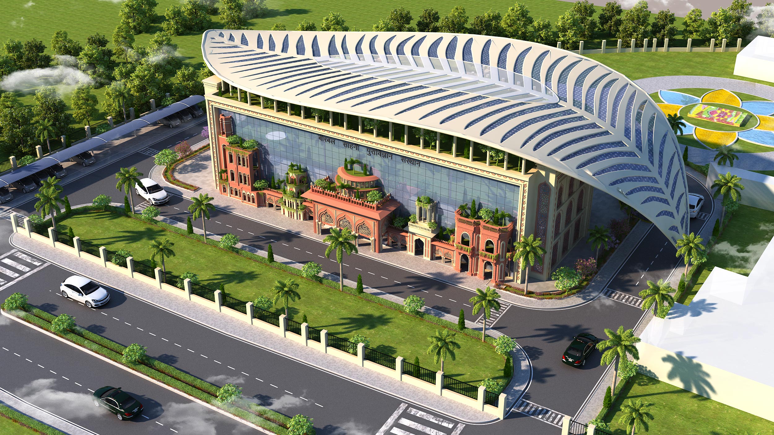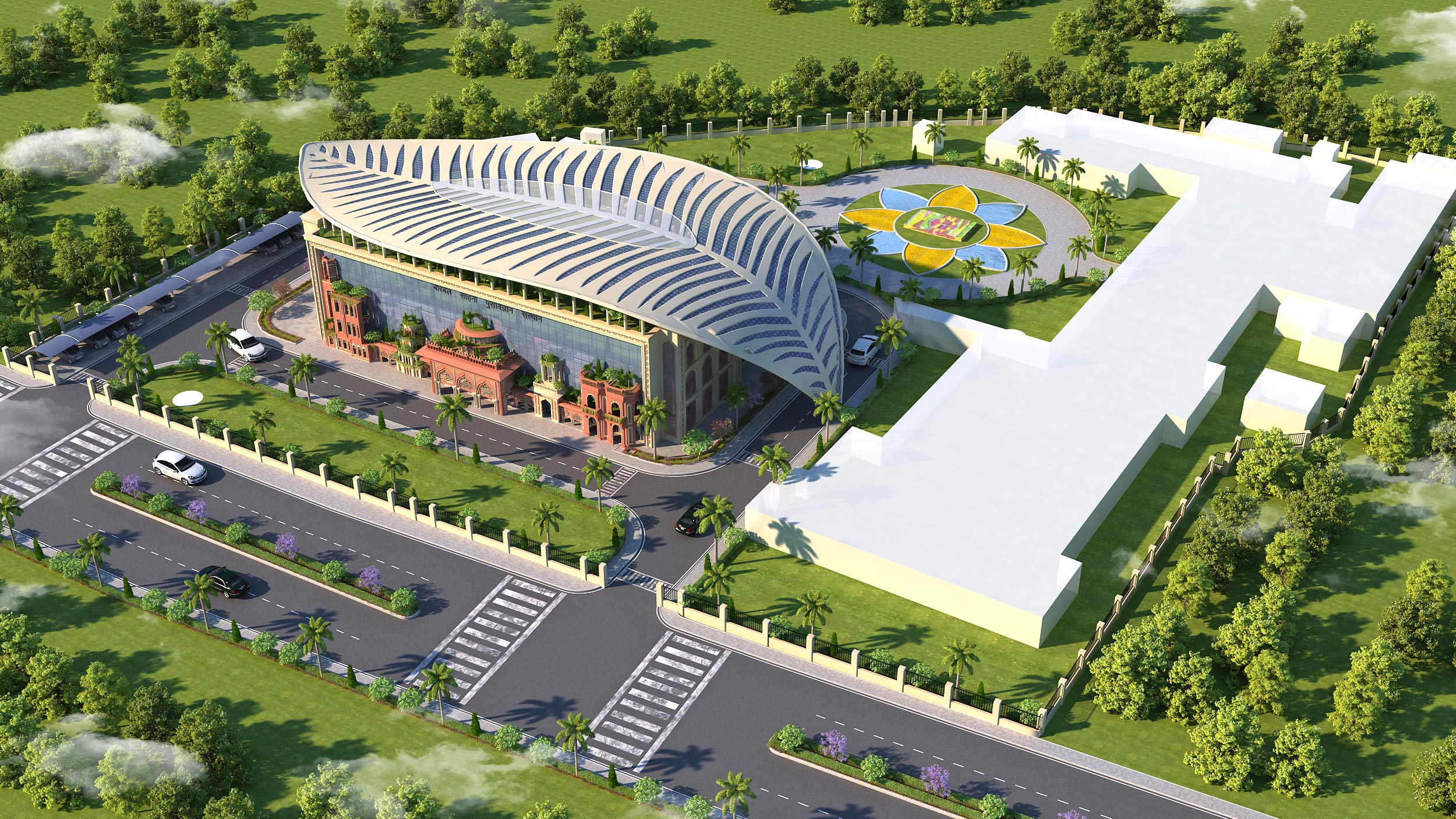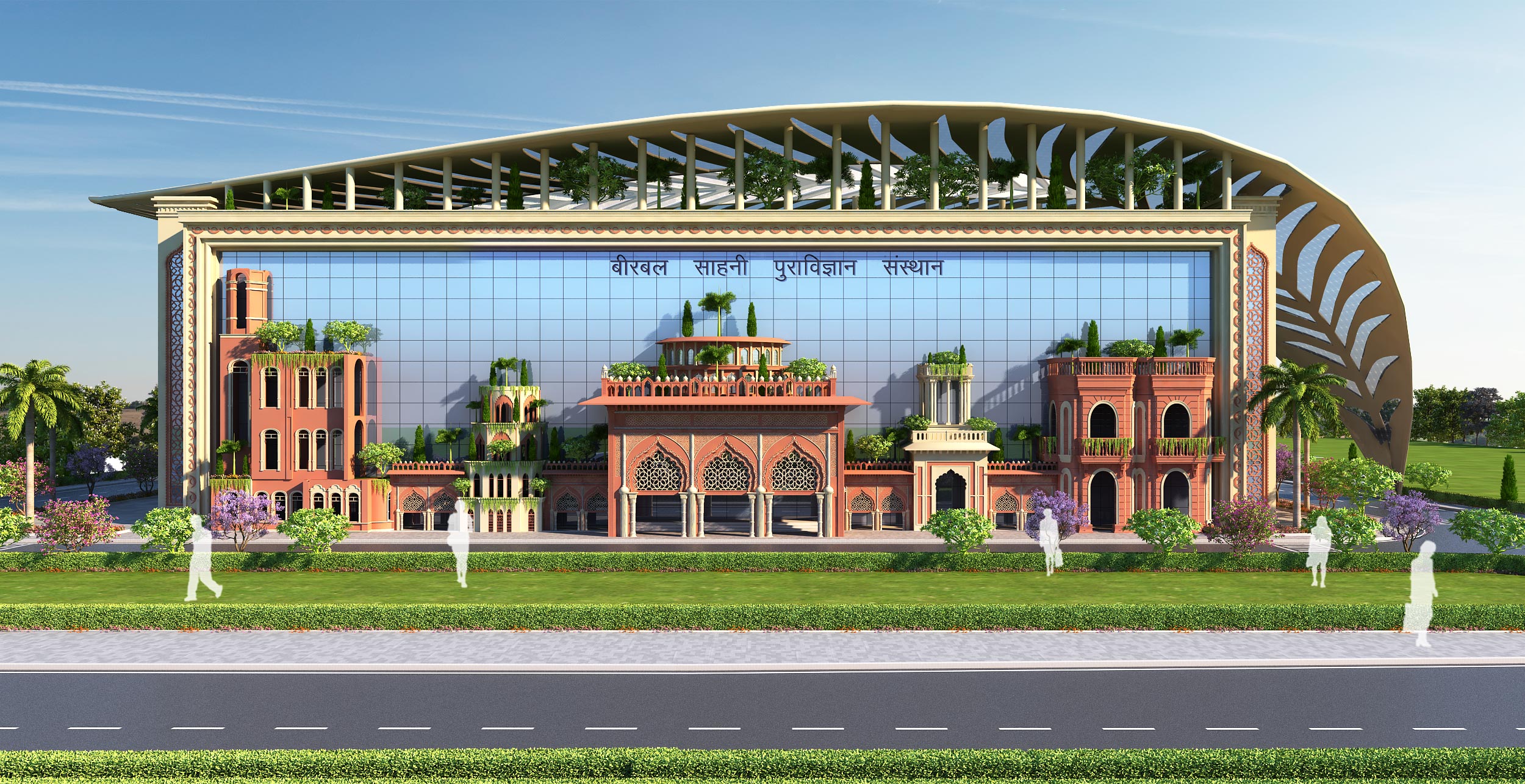 The proposed design for the Birbal Sahni Institute of Palaeosciences in Lucknow envisions a contemporary research campus that balances modern architectural expression with contextual sensitivity. With a project cost of ₹100 crore and a built-up area of approximately 90,000 sqm, the scheme reflects a forward-looking institutional identity rooted in its scientific ethos. A defining architectural element is the leaf-inspired roof form, symbolizing growth, evolution, and the institute’s deep connection with natural sciences. The façade combines a sleek glass curtain wall system with subtle historic architectural detailing, creating a refined dialogue between contemporary construction and traditional character. Surrounded by landscaped open spaces, the campus fosters a strong relationship with nature while providing a calm and inspiring environment for research and learning. Sustainability remains integral to the design, incorporating energy-efficient systems and green landscapes that support an environmentally responsible academic setting.
