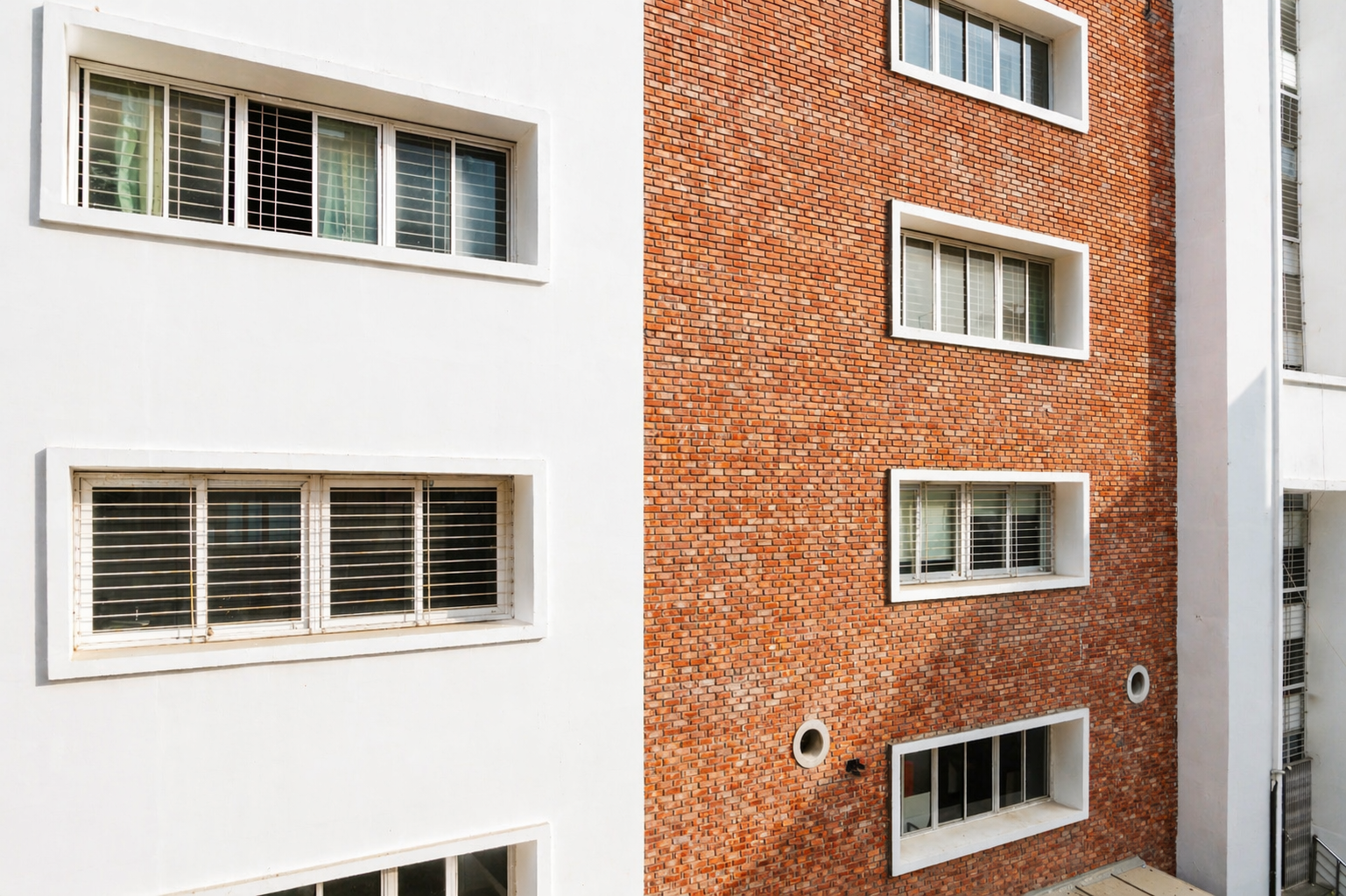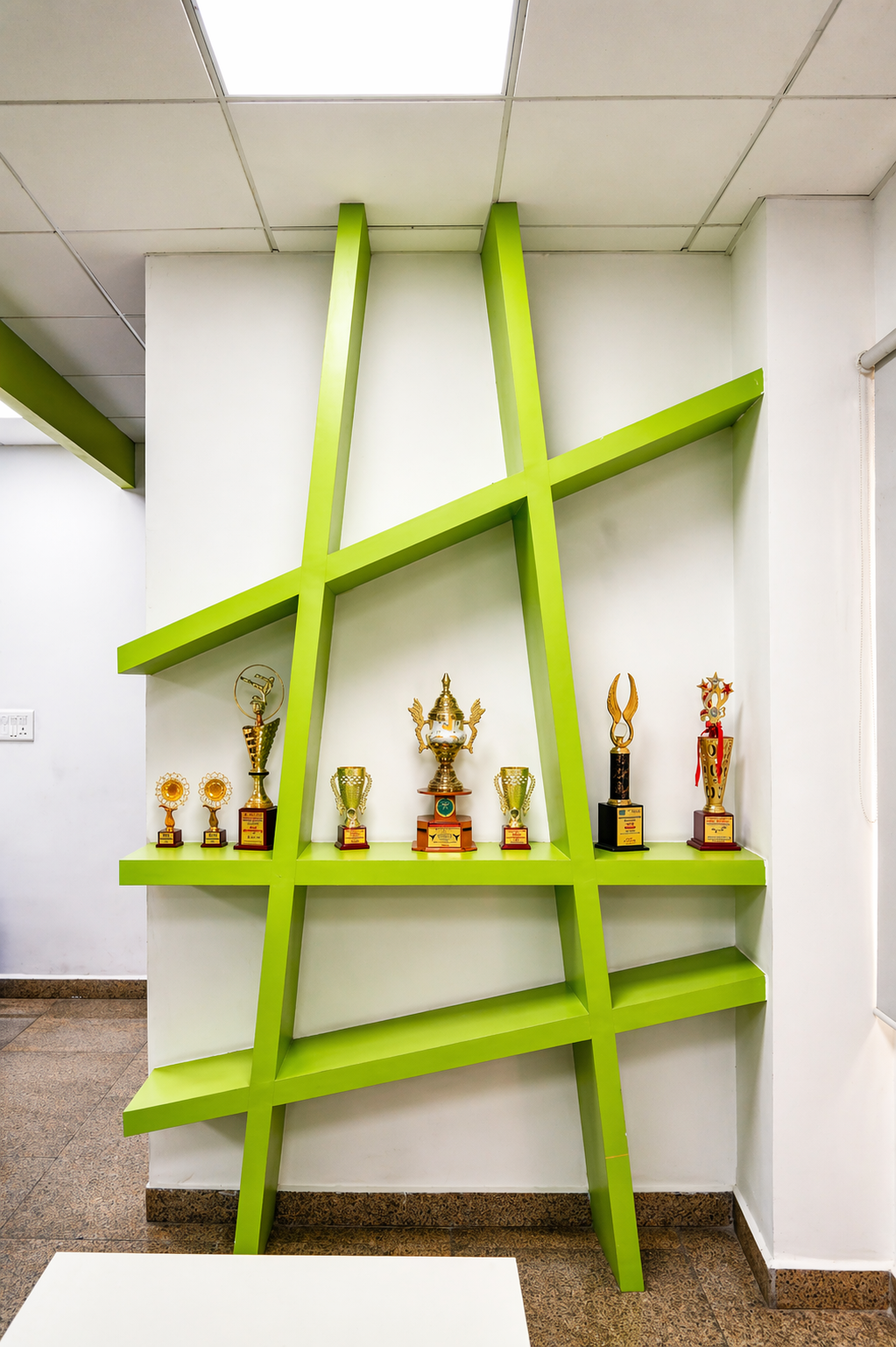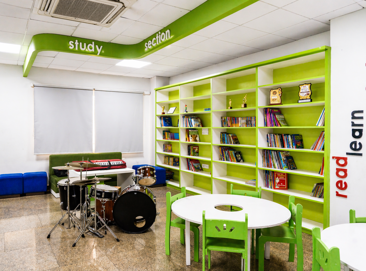 CMS, Gomti Nagar Extension presents an educational architecture that combines institutional dignity with a child-friendly learning environment. The exterior composition uses exposed brick panels, white plastered surfaces, rounded corner elements and a formal central entrance with columns to create a balanced and recognizable façade. Inside, the design becomes more playful and interactive, with bright color accents, themed learning zones, open reading corners, custom shelving and graphic wall art that support creativity and engagement. The interiors are planned to feel welcoming, flexible and age-appropriate, while still remaining orderly and functional. Overall, the building reflects a thoughtful blend of discipline, warmth and contemporary educational design.