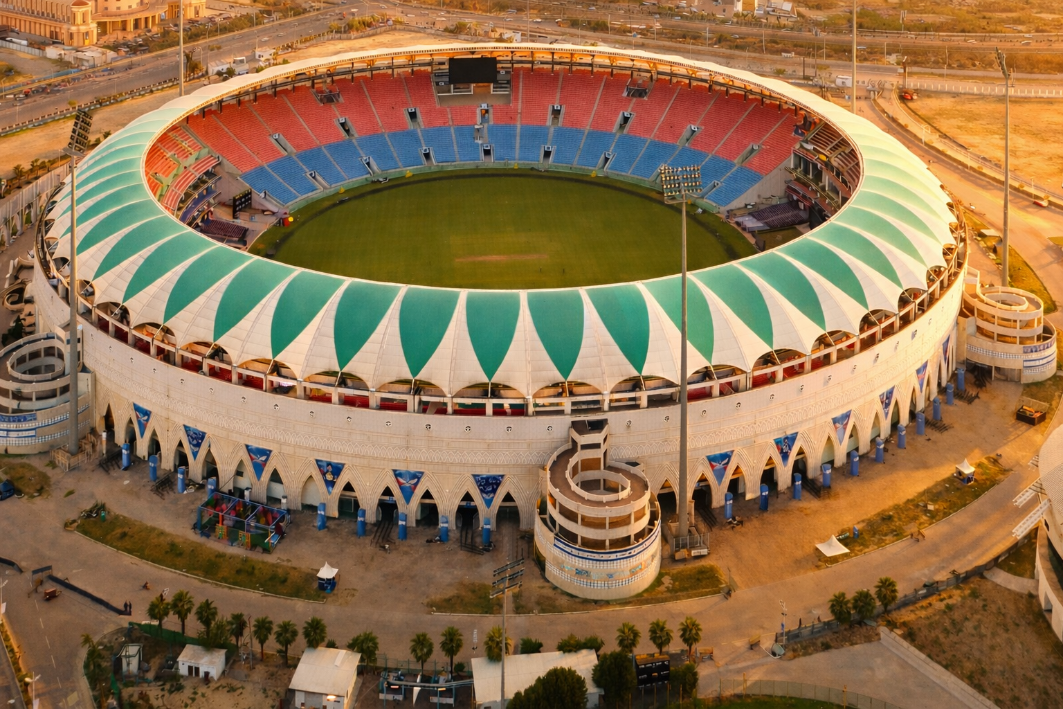 The Ekana International Cricket Stadium in Lucknow, India, is a premier sports facility designed for international cricket and major events. Featuring an innovative wave-patterned roof, advanced floodlights, and ergonomic seating, the stadium ensures comfort and clear sightlines for spectators. Sustainable design elements include natural ventilation, rainwater harvesting, and energy-efficient fixtures. Modern amenities such as spacious locker rooms, high-tech media centers, VIP lounges, and ample parking enhance functionality. Blending traditional and contemporary aesthetics, the stadium is a landmark in Lucknow, reflecting cultural heritage with arches and geometric patterns, while serving as a vibrant community space. An international cricket stadium includes an indoor stadium, a football ground, guest houses, and boys’ and girls’ hostels.