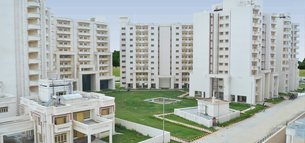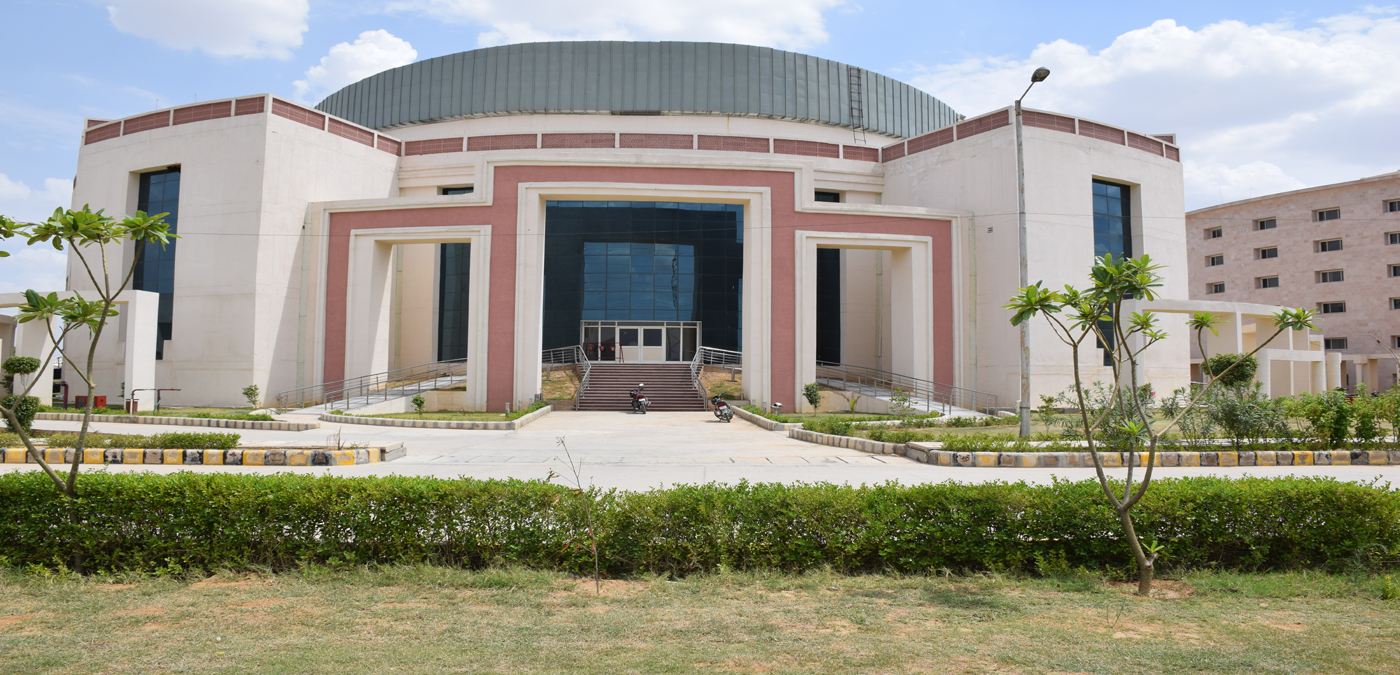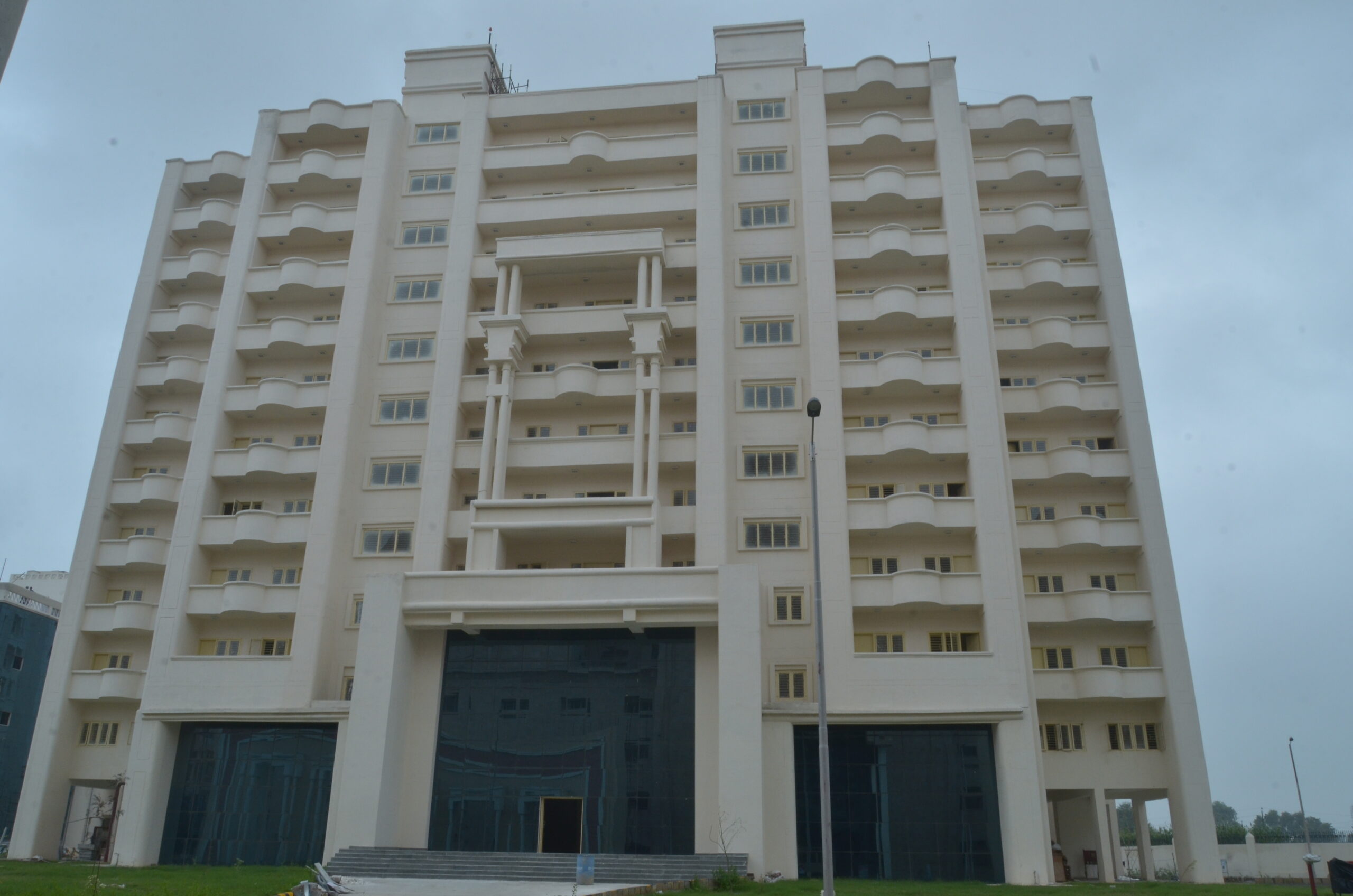 The ESIC 500-bedded Hospital and Medical College at Alwar presents a monumental yet functional architectural character, blending institutional efficiency with civic presence. Clad in warm sandstone hues, the buildings feature bold geometric masses, curved volumes, and recessed fenestrations that respond to the regional climate. The composition is anchored by grand porticos and colonnaded entrances, lending a sense of formality and accessibility. Large glazed openings introduce daylight into critical spaces, while shaded corridors and deep overhangs enhance thermal comfort. The campus planning integrates academic, healthcare, and residential blocks within a cohesive framework, ensuring clarity of movement and a balanced relationship between built form and open spaces.