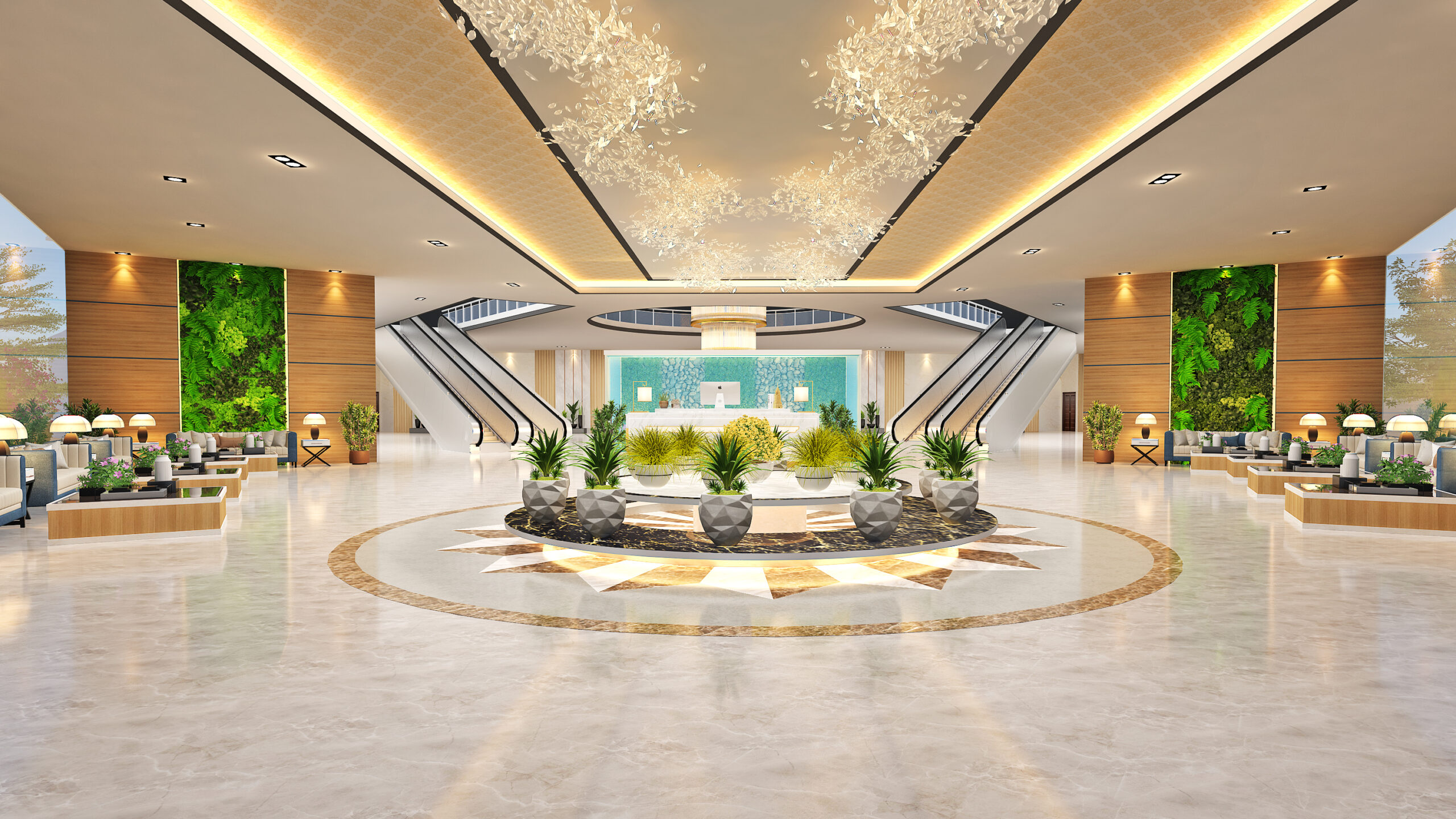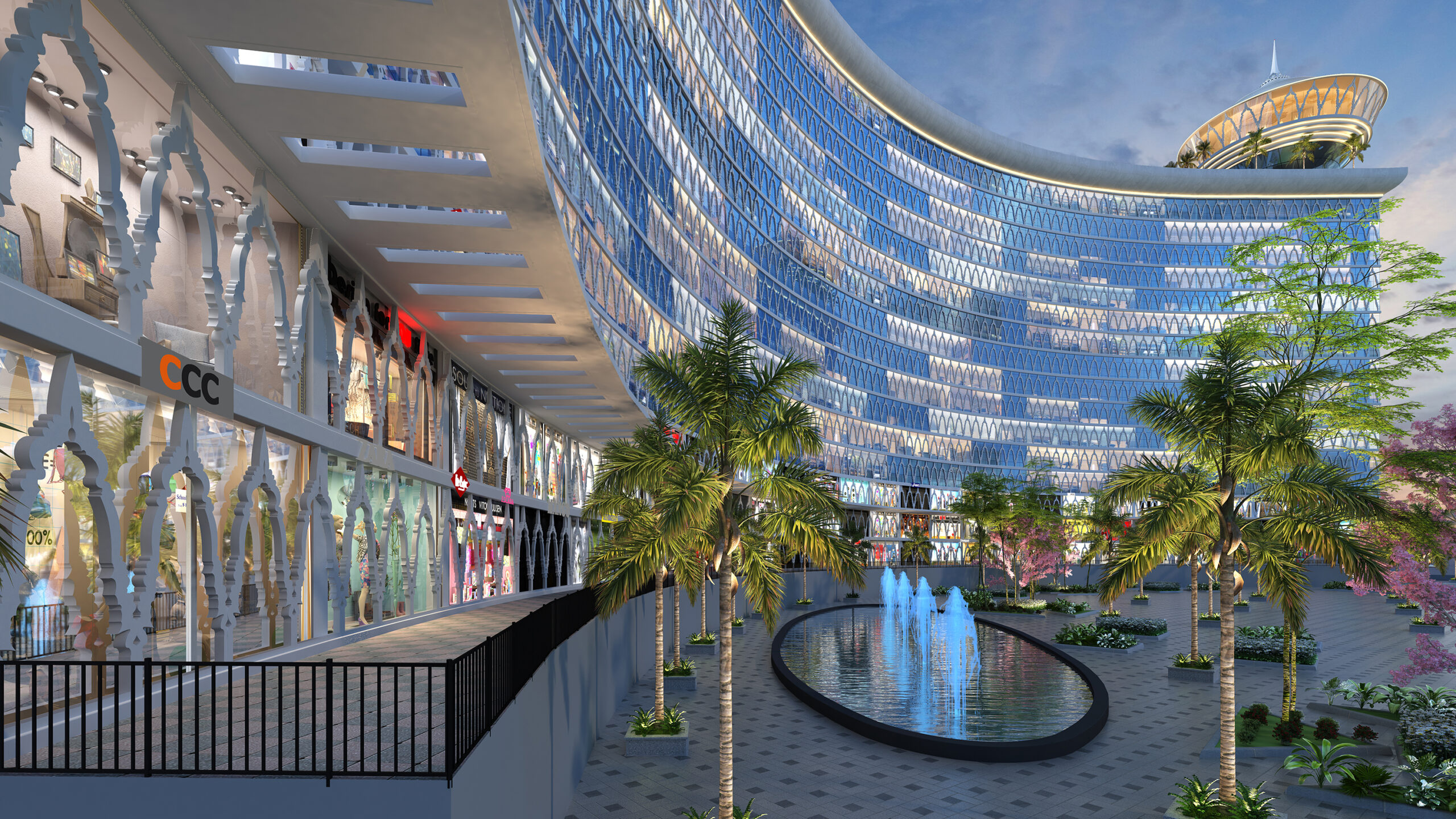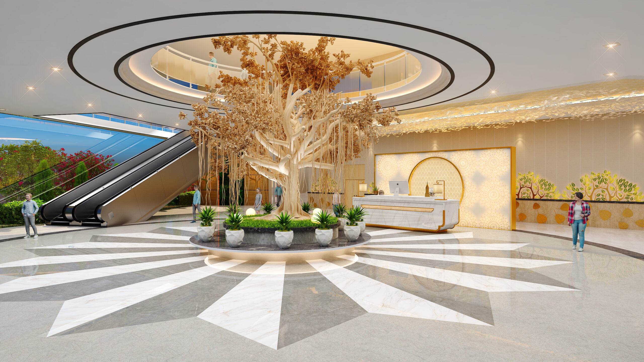 The Gorakhpur Convention Centre emerges as a sculptural landmark, defined by its sweeping curvilinear massing and fluid architectural language. The glazed façade wraps the structure in a continuous ribbon, fostering visual permeability while reflecting the surrounding greenscape. A grand forecourt anchors the composition, leading to a dynamic entrance pavilion crowned with an organic, leaf-inspired roof. Internally, the spatial narrative unfolds through expansive double-height lobbies, biophilic inserts, and meticulously crafted ceilings that integrate light and texture. The auditorium exemplifies volumetric precision with acoustic panelling and rhythmic geometry. Roof-level amenities, including landscaped decks and an infinity-edge pool, extend the built form into a leisure-driven skyline experience.