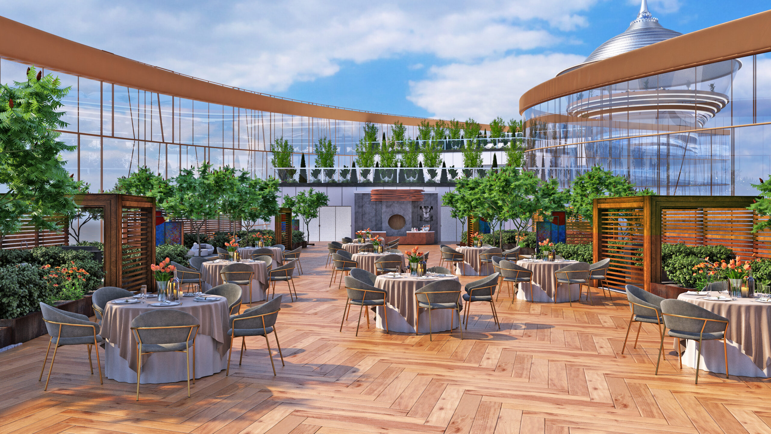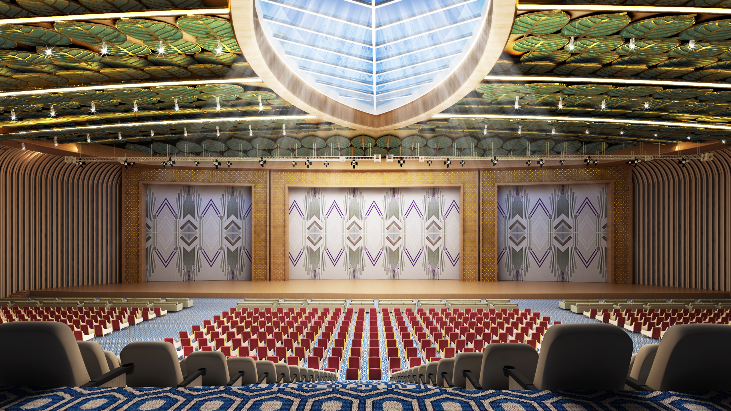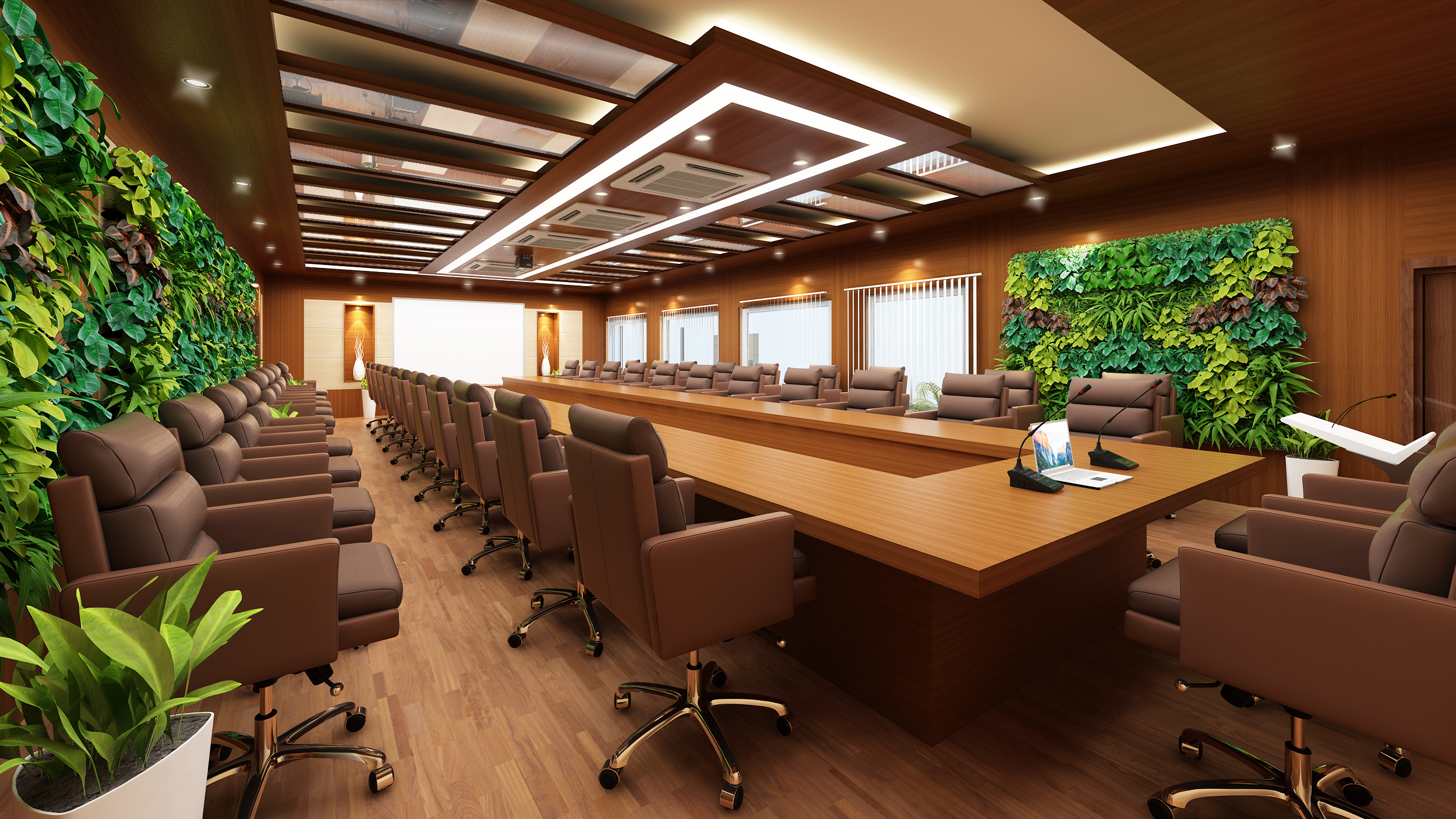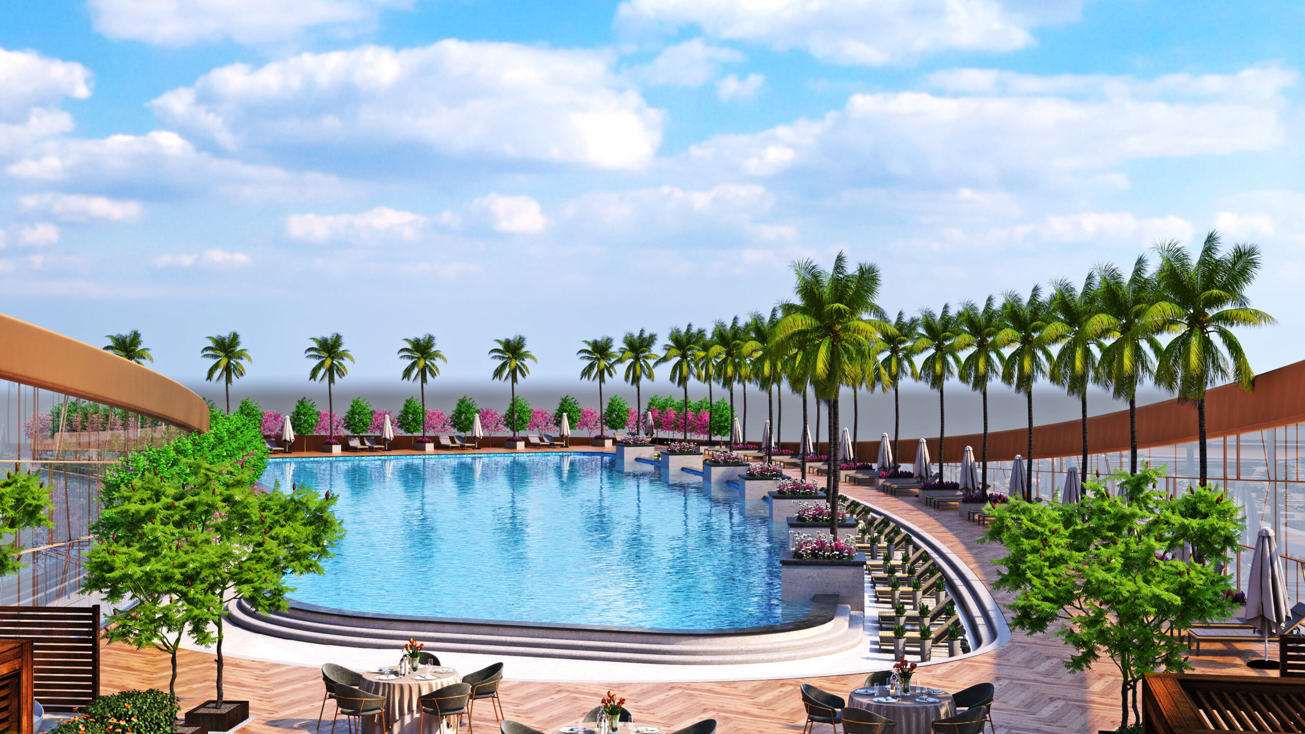 The Gorakhpur Convention Centre emerges as a sculptural landmark, defined by its sweeping curvilinear massing and fluid architectural language. The glazed façade wraps the structure in a continuous ribbon, fostering visual permeability while reflecting the surrounding greenscape. A grand forecourt anchors the composition, leading to a dynamic entrance pavilion crowned with an organic, leaf-inspired roof. Internally, the spatial narrative unfolds through expansive double-height lobbies, biophilic inserts, and meticulously crafted ceilings that integrate light and texture. The auditorium exemplifies volumetric precision with acoustic panelling and rhythmic geometry. Roof-level amenities, including landscaped decks and an infinity-edge pool, extend the built form into a leisure-driven skyline experience.